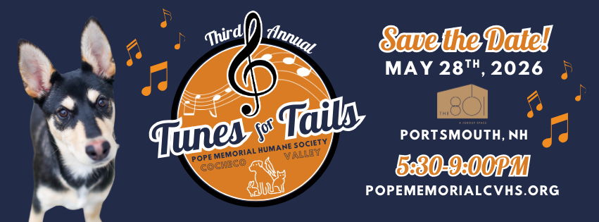 After the incredible success of last year’s event, we thought—why change a great thing? Tunes for Tails is back for its third year, bringing music, fun, and fundraising to support the animals of Pope Memorial Humane Society – Cocheco Valley!