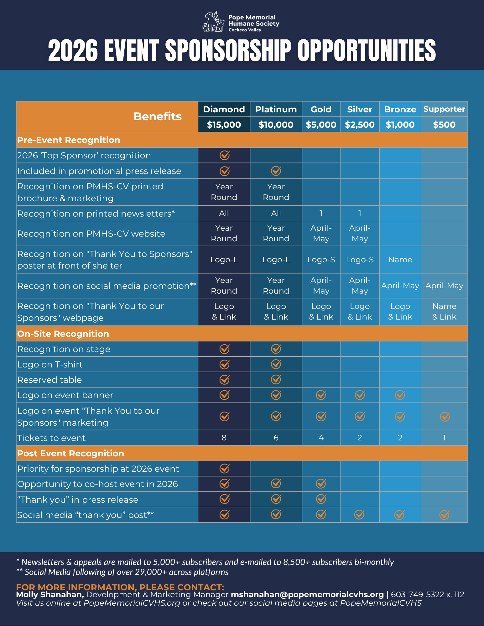 Want to get a head start? Sponsorship opportunities for 2026 are on the way, don’t miss your chance to be part of it! Reach out to Molly at mshanahan@popememorialcvhs.org